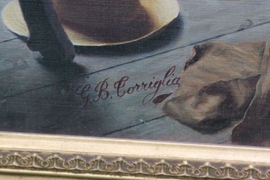 Lithograph print of a family knitting by G.B Corringla framed and glazed H49 W74cms Cost of postage and packaging is £15.99 plus VAT on a tracked and recorded service. Combined postage available. World Wide and European service please enquire by email.