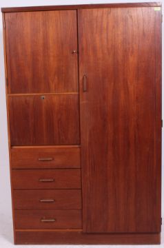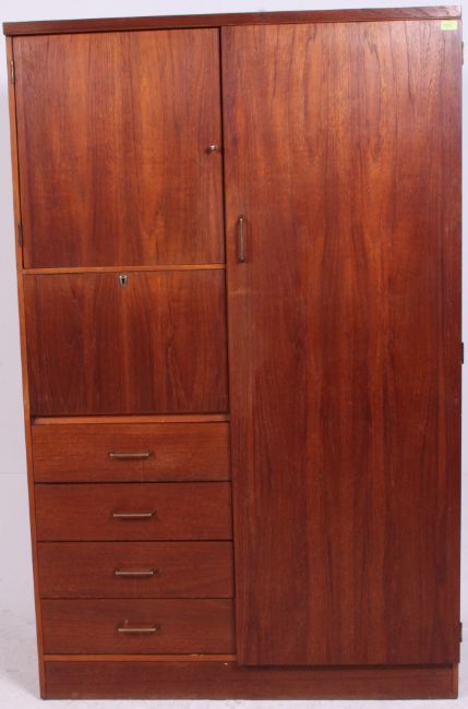 A retro 1960's Austinsuite teak wood compactum wardrobe armoire. The sectional upright body with drawers, wardrobe and locker compartments. H=173 by W=109 by D=48