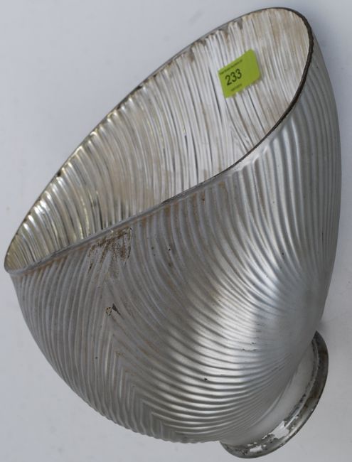 A good 1930's Art Deco glass oil lamp shade of unusual shape with circular recess to the bottom having a white mottled finish