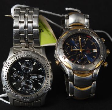 A Citizen Eco-Drive Chronograph wristwatch WR100 mechanical movement watch on steel bracelet together with an Accurist Alarm Chronograph WR50m mechanical movement wristwatch set on a steel bracelet