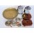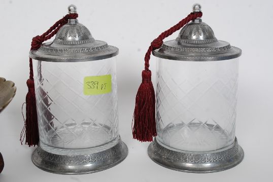 An Asiatic brass bowl on stand, a pair of Olive wood trinket boxes, a set of small copper pans etc