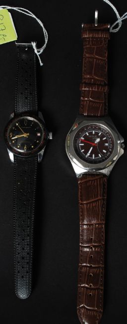 A Terramar black faced mechanical movement wristwatch having date aperture on plastic strap together with a AVi-8 black faced gents mechanical movement watch.