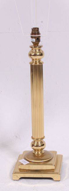 A good quality neo-classical wooden and copper caubel mounted table lamp raised on brass paw feet. Together with a brass corinthium column table lamp H87cm