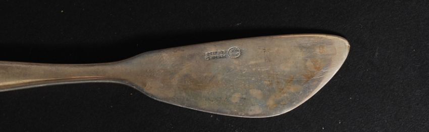 A Georg Jensen 925 silver butter knife complete with the original box bearing marks for Georg Jensen (see illustration )