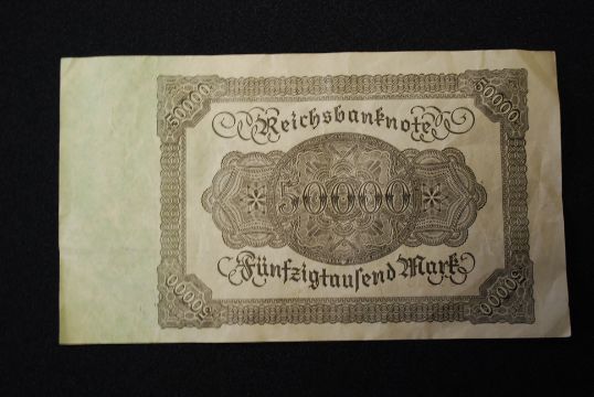 A rare WW2 German Waffen SS - Berlin Reichsbanknote 50000 - Weimar Republic. The large note with 3 inkstamped marked for the Waffen SS to the right margin. Bank Note Serial No 42m 135166.