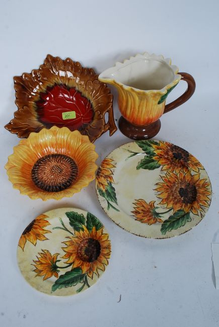 A set of hand painted Sunflower ceramic dishes and jug by Tuscan