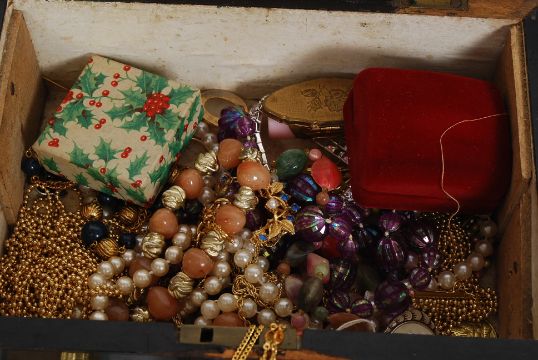 A collection of costume jewellery to include a 9ct gold crucifix together with bracelets, necklaces etc as illustrated