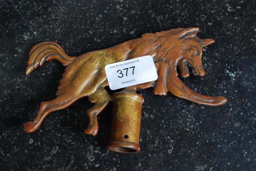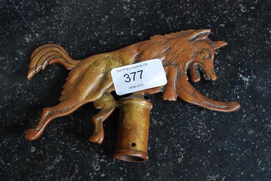 A late 19th/early 20th Century brass Friendly Society type staff finial of a wolf