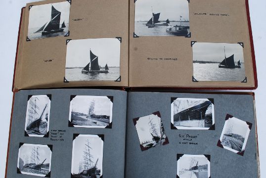 A collection of black and white photographs of ships taken in the 1940's & 1950's in two albums by noted artist Peter J Stuckey. To include SV Cutty Sark & HMS Worcester at Greenhithe 1952, SS Cavina, Training Ship Conway aground 1953, SV Pamiv, Penarth 1950, SV Passat at Avonmouth Docks, Grand Coronation at Thames & Medway 1953,