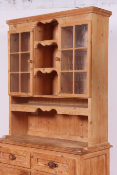 A 20th century antique style pine welsh dresser having a series of drawers and cupboards with drawers beneath a glazed upright section to the rear H270 W100 D44cm
