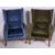 A pair of mid 20th century retro vintage armchairs raised on beech turned tapered legs , once chair in blue velour, the other in green velour.