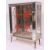 A 1950's retro formica and mirror glass display cabinet of colourful form with shelves to centre