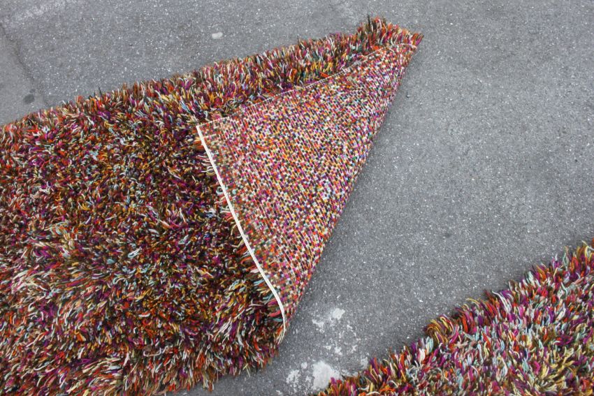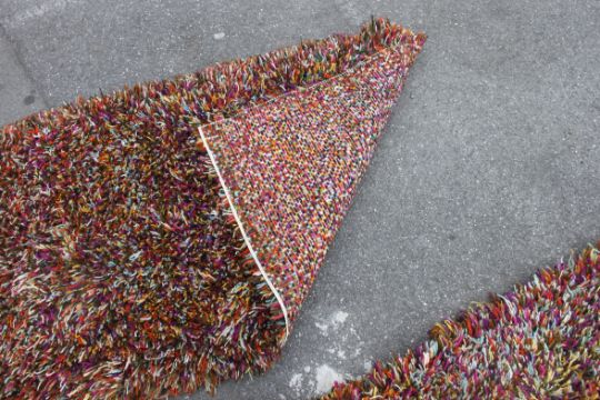A collection of 4x retro multicoloured 1970's shagpile carpets to include two runners and two mats