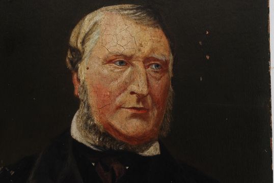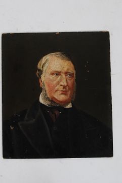 An unframed Victorian oil on board painting 3/4 portrait study of an elderly gentleman with notation to verso 1872 FM Taylor