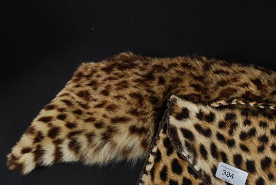 A taxidermy Leopard skin clutch bag owned by Audrey Lewis Hopkins along with a matching scarf. The Leopard in question being shot by her husband Captain Clive Lewis Hopkins in the 1930's whilst serving with the Indian Army.