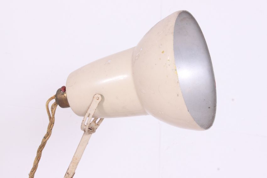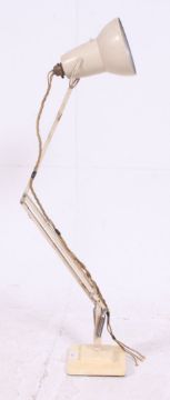 A 1940's Herbert Terry anglepoise Industrial desk lamp having square terraced base with pendant shade