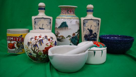 A collection of porcelain to include vases , decanters , a marmite pot and various other items. H23c Cost to post within the uk is £15.99+ VAT on a tracked and recorded service using strong boxes with appropriate bubble wrap and foam chip We combine shipping on multiple purchases where feasible and safe to. For European destinations, the cost to post is £29.99+VAT using a tracked and recorded service. Combination postage is also available where feasible. Worldwide postage is also available. Please email us for quotation.