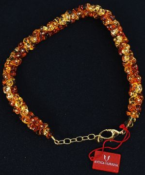 A cased ladies Antica Murrina glass beads necklace having yellow metal chain with box and labels still attached
