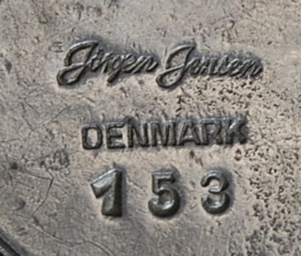 A Jorgen Jensen pewter pendant & long necklace of geometric pierced circular form set with a central lozenge shaped cabochon cut turquoise coloured stone, Marked Jorgen Jensen DENMARK 153 to the reverse