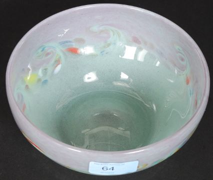 A 20th century swirl coloured glass studio bowl, with impressed mark to base.