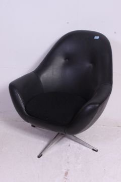 An Arne Jacobsen inspired retro 1960's black vinyl upholstered egg swivel chair - armchair. Raised on chrome quadruped base