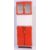 A 1950's vintage retro two tone kitchen cabinet having red doors and fall front centre. H179 x W61 x D41 cm