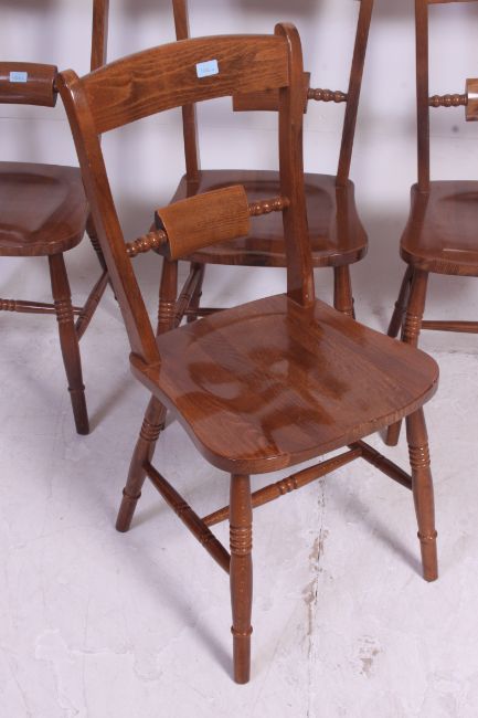 A set of 4 contemporary beech wood Oxford bar back kitchin dining chairs raised on turned legs with saddle style seats