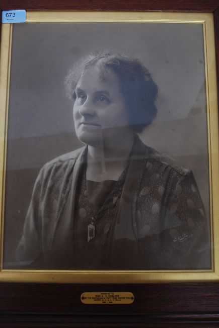 A framed and glazed certificate presented to E.A Garland from W.O Wills factory for long service along with a framed and glazed Photograph portrait of Edith Alice Garland also presented by W.O Wills