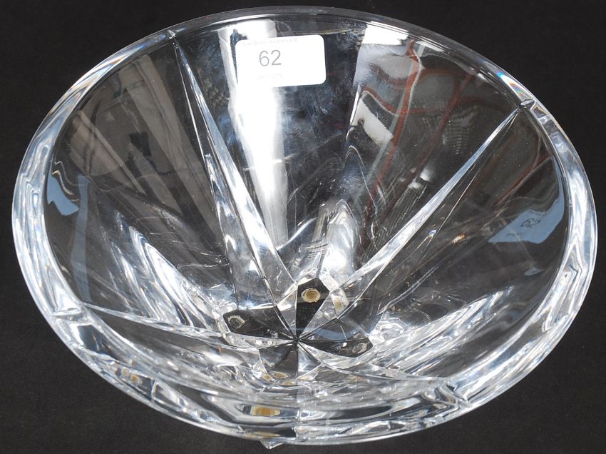 A 20th century signed crystal studio bowl, indistinct - Raguishi (?) W23 cm