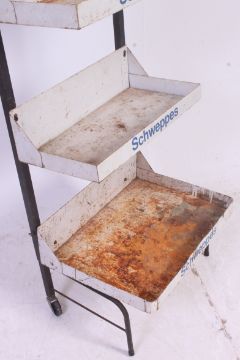 A vintage retro shop advertising / point of sale shop display case for Schweppes soft drinks. H 138 x W54 x D44 cm