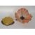 A 1930's Art Deco 3 branch pink glass shell ceiling chandelier light together with a yellow glass shell wall light