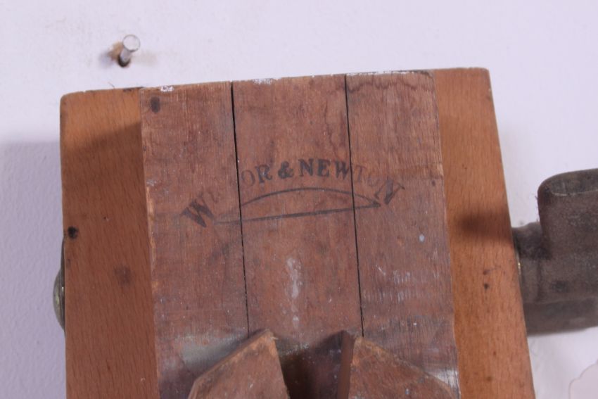 A vintage large wooden artists easel having metamorphic action previously owned by listed artist Michael Coote - Sherlock Holmes illustrator.