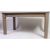 A 1970's upholstered teak wood and painted shabby chic refectory table raised on squared supports with scrub top. H78 x W153 x D97 cm