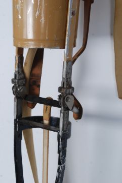 A vintage mid 20th century medical Prosthetic leg complete with foot block