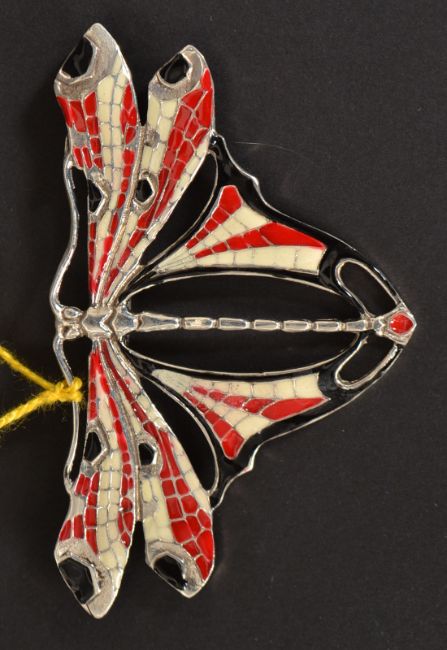 A white metal stamped 925 for silver and enamel set dragonfly ladies brooch