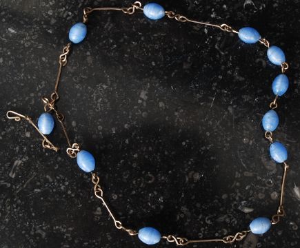 A 9ct gold and beaded glass stone contemporary necklace being chain linked.