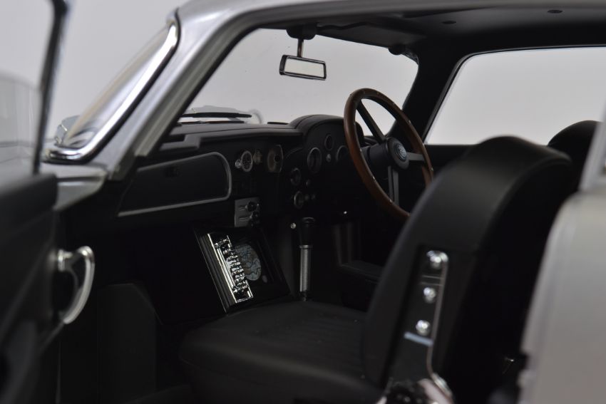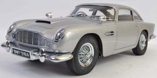 JAMES BOND 1:8 SCALE ASTON MARTIN; One of the best diecast models of a James Bond car in existence. A large heavy quality 1:8 scale Eaglemoss diecast precision model of James Bond's Aston Martin DB5. Highly detailed, the original spec for the model includes; working rear and front lights, working horn, ejector seat, accelerator sound effects, brake lights, light up map to interior, machine guns in lights, movable bullet proof rear screen, key ignition, rubber tyres etc. This particular model is well made. Just one or two of the features are not working (horn, one headlight), but on the whole this set is in fantastic condition. Comes with a custom made glass display case and plinth, and original magazines (not photographed) 56cm long, approx 8.5kg.