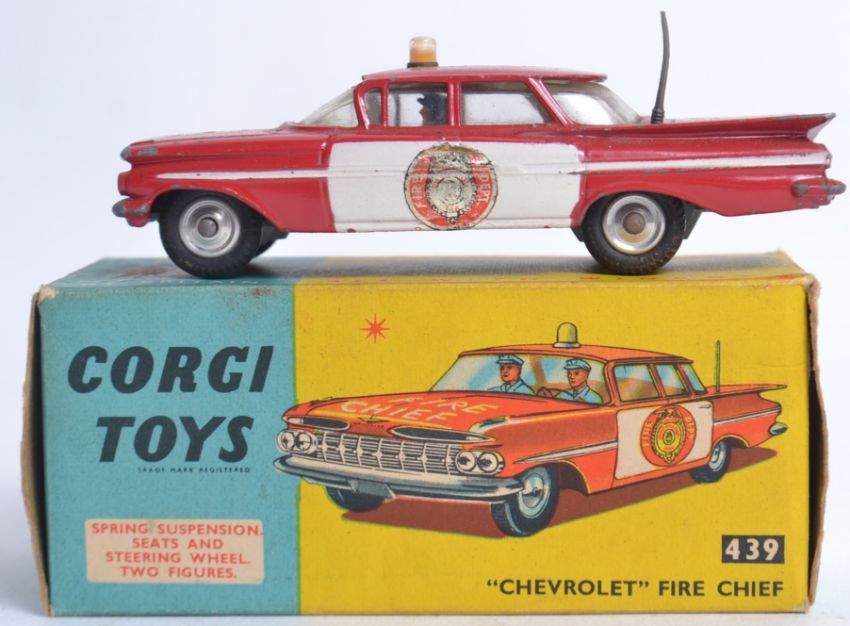 CORGI; Original vintage Corgi Toys 439 Chevrolet Fire Chief Car boxed diecast model within the original box.