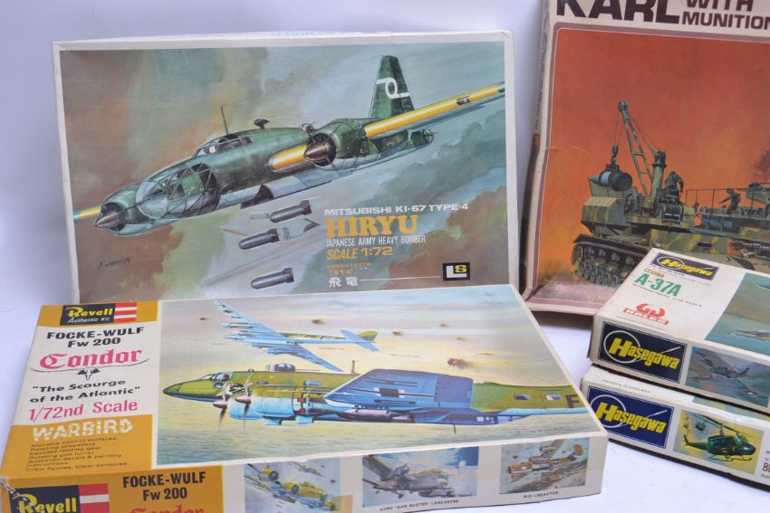 MODEL KITS; 5x vintage plastic model kits to include Hasegawa, Revell and others. All military themed. Within the original boxes. Contents unchecked.