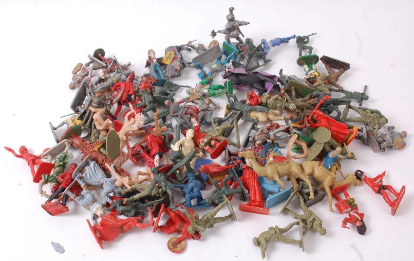 TOY SOLDIERS; A small and varied collection of vintage toy soldiers to include plastic, some Britains Swoppets, Crescent, lead soldiers and other assorted figures / soldiers etc.