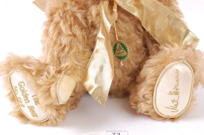 HERMANN BEAR; Limited Edition ' Golden Bear ' Hermann teddy bear. No 198/1000, complete with certificate and tags. Has musical mechanism to rear.