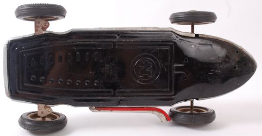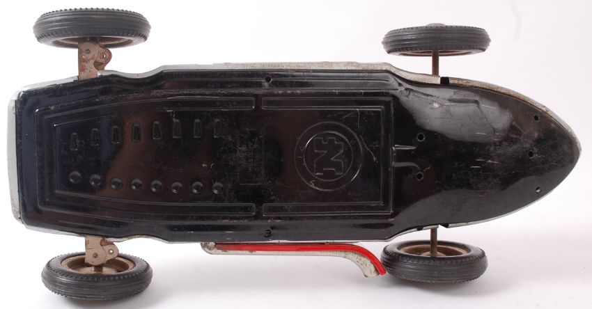 JNF MERCEDES; vintage West German made JNF Monoposto battery operated tinplate Mercedes racing car toy. Unboxed, with original wheels and painted detail. Large impressed stamp to base for ' JNF.'