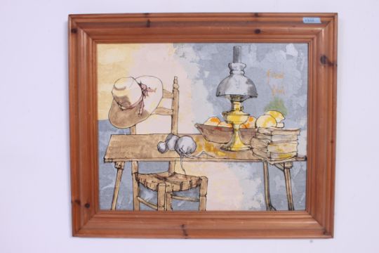An framed Acrylic on canvas Still Life study of a kitchen table signed Bernard Dufour