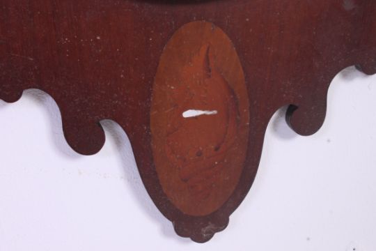 A Victorian mahogany inlaid carved oval pier wall mirror, with inset shell panel to bottom, and applied golden bird decoration to top.