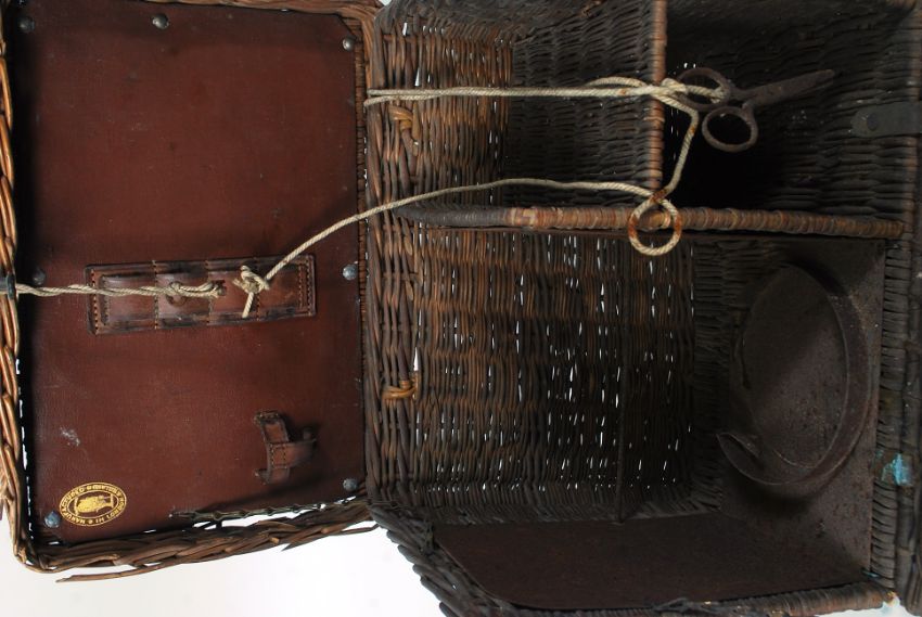 An early 20th century automotive wicker car picnic basket. Hinged top and flip front revealing the spaced interior.
