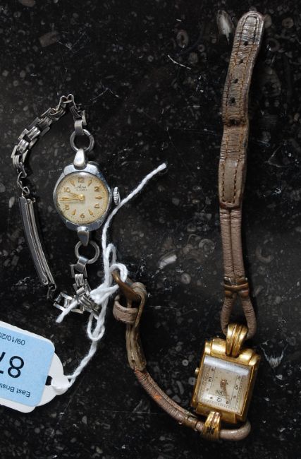 2 vintage ladies cocktail watches, one being rolled gold by Medana on leather strap, the other by Avia having 15 jewel movement