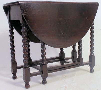 A good quality 1920's solid oak barleytwist gate leg dining table. Gate leg actions with barley twist supports. Measures: 74 x 90 x 41