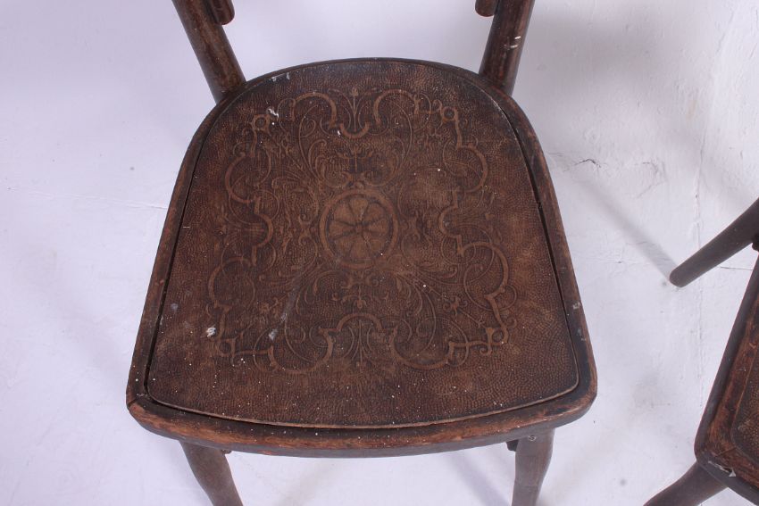 A pair of 1920's bentwood Thonet style bentwood Cafe / Bistro chairs. Measures: 92 x 38 x 38.