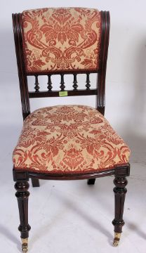 A pair of good quality Victorian mahogany dining chairs in the manner of Lamb of Manchester. Raised on turned reeded legs having overstuffed seats and back rests H90 x W46 x D47 cm
