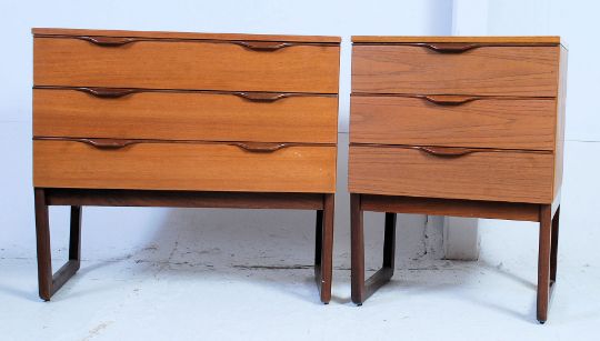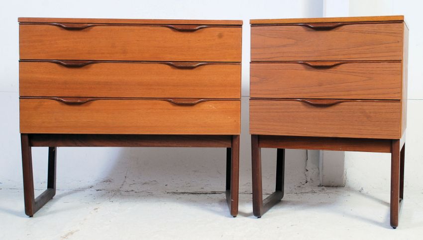 A vintage retro 1970's Europa teak wood chest of drawers raised on angled feet. Together with another similar chest with near matching handles. Measures: 69 x 75 x 45.